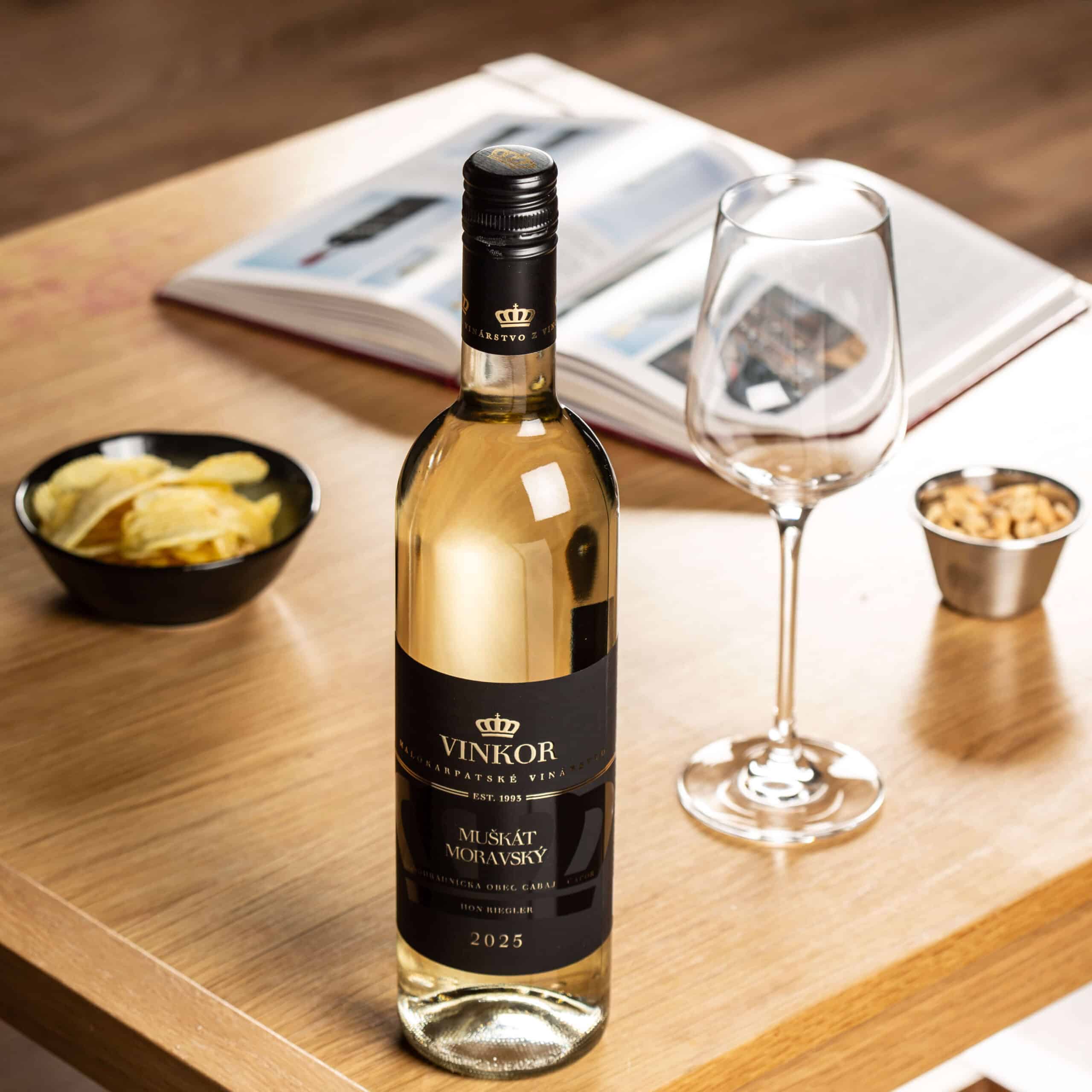 Biele víno Muškát moravský 2025 z rodinného vinárstva Vinkor zaujme svojím sviežim a aromatickým charakterom. Už na prvý pohľad poteší jemnou svetlo žlto-zelenou farbou, ktorá naznačuje jeho mladistvý prejav. Vo vôni sa rozvíjajú príjemné tóny bielych kvetov a citrusov. Aromatika pôsobí sviežo a ľahko, s typickým muškátovým charakterom, ktorý robí toto víno výrazným a zapamätateľným. Chuť je ľahká, ovocná a harmonická. Osviežujúca kyselinka dodáva vínu iskru a podporuje jeho sviežosť. Každý dúšok pôsobí príjemne šťavnato a vyzýva k ďalšiemu napitiu. Hrozno pochádza z vinohradov v Nitrianskej vinohradníckej oblasti – Cabaj-Čápor, hon Riegler. Muškát moravský patrí medzi obľúbené aromatické odrody, ktoré sa výborne hodia na každodenné pitie aj na príjemné chvíle počas teplých dní. Víno odporúčame podávať vychladené pri teplote 10–12 °C. Skvele doplní ľahké predjedlá, ovocné dezerty alebo svieže letné jedlá.